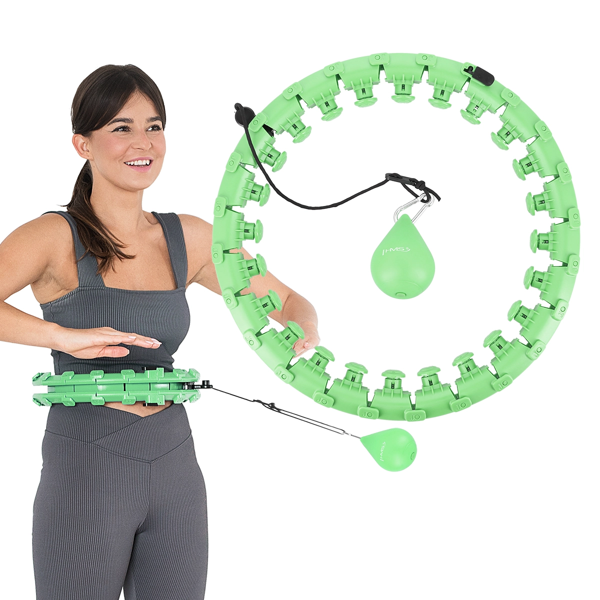 A HMS HHW01 egy modern masszázs hullahopp karika, amely a célzott derékedzést kellemes masszázzsal ötvözi. A 24 összekapcsolható elem lehetővé teszi az ideális méret beállítását 46–105 cm derékbőséghez. A belső, rugós masszázs tappancsok csillapítják a rezgéseket és kíméletesen stimulálják a has- és csípőterületet, míg a görgős, golyóscsapágyas súly folyamatos és halk mozgást biztosít.