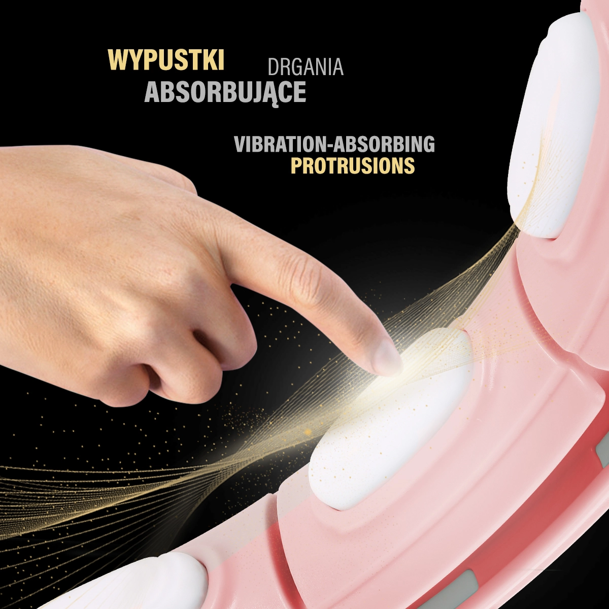 Minden elem belső oldalán masszázsbütyök mágnessel található, amely edzés közben kellemesen masszírozza a deréktájat, támogatja a vérkeringést és hozzájárul a anyagcsere aktiválásához. A PVC, ABS, PP, TPR és acél minőségi kombinációja hosszú élettartamot és kényelmes használatot garantál. A karika könnyen összeszerelhető, stabil, és gördülékenyen fut a golyóscsapágyas kerekeknek köszönhetően.