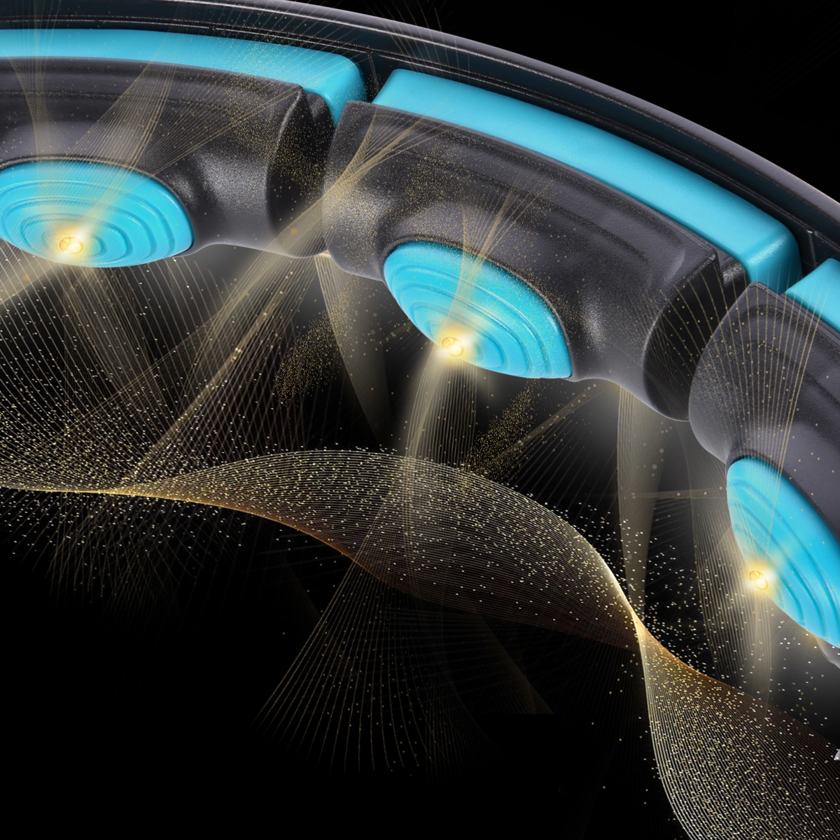 A nagyobb intenzitásért a karikához forgó, homokkal töltött súly csatlakozik, amely javítja a dinamikát és a zsírégetés hatékonyságát. Minden masszázselemben integrált mágnes található a további stimuláció érdekében. Az univerzális neoprén karcsúsító öv (100 × 20 cm) fokozza a has területének felmelegedését, támogatja az izzadást, és a tépőzáras zárásnak köszönhetően jól illeszkedik.