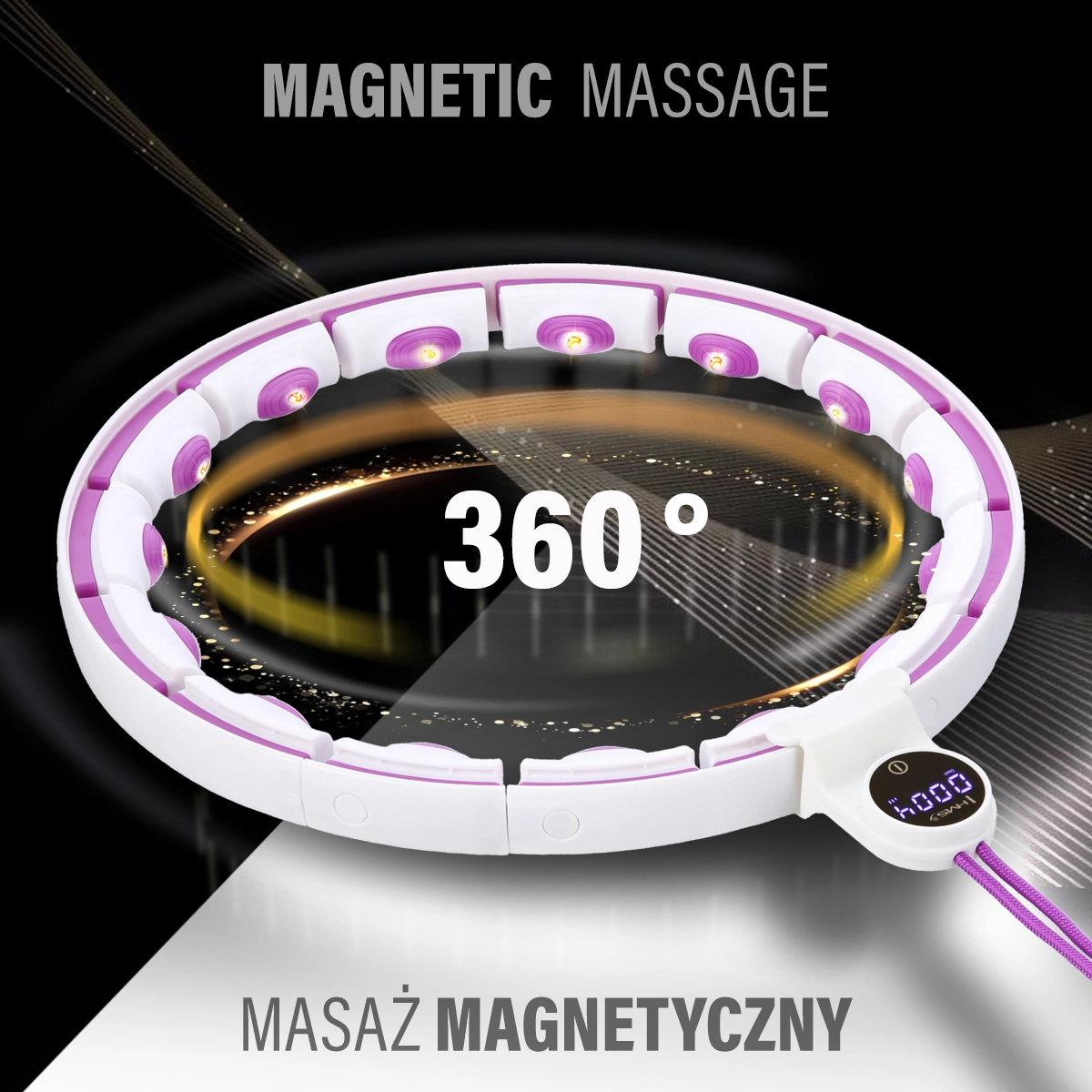 Fejlessze otthoni edzését a masszázs hullahoppal, amely a 4 részes kialakításnak köszönhetően gyorsan igazítható a derékbőséghez. A fém csatlakozók növelik a stabilitást és az élettartamot, míg a lapos, homokkal töltött súly egyenletes forgást és nagyobb terhelést ad a hatékonyabb zsírégetésért. A beépített mágnesek a masszázs elemekben támogatják az anyagcserét, és kellemes, finom stimulációval teszik élvezetesebbé az edzést.