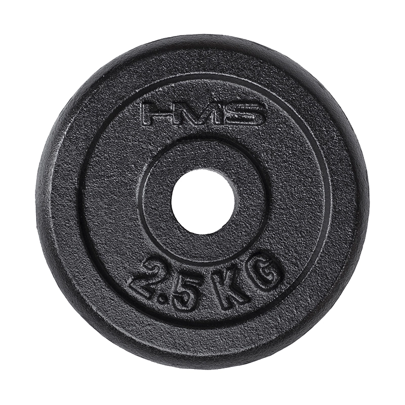A HMS 2,5 kg-os öntöttvas tárcsa bevált választás a terhelés fokozatos növeléséhez. A 31 mm átmérőjű nyílásnak köszönhetően tökéletesen illeszkedik a szabványos egykezes és hosszú rudakra, fekete felületkezelése pedig védi a kopástól és a korróziótól.