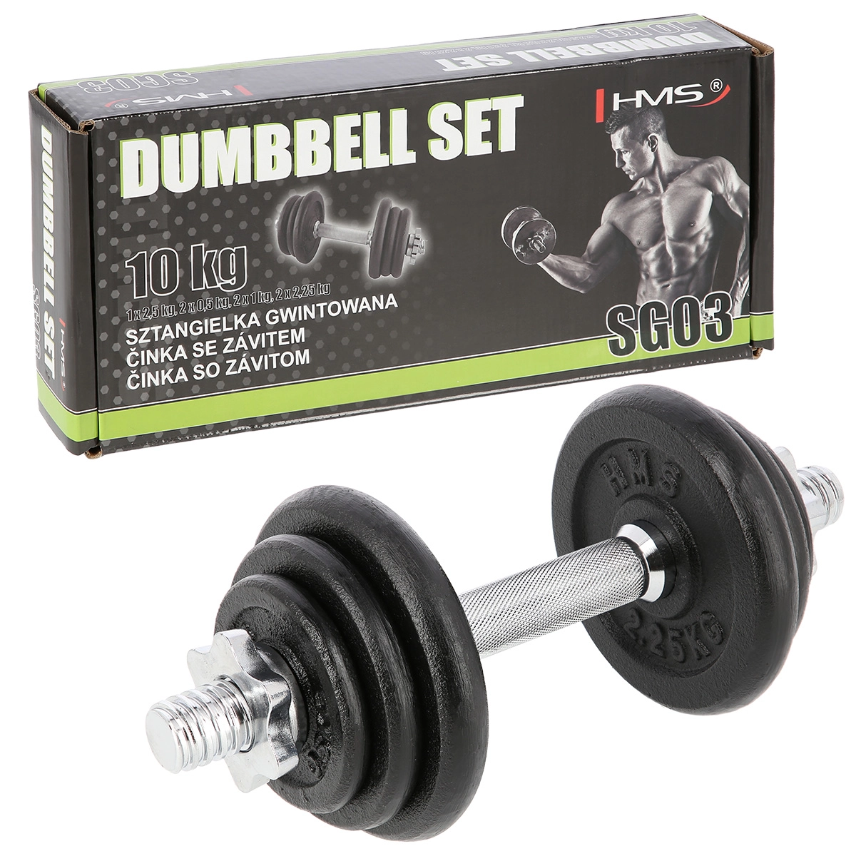Univerzális, egykezes, tárcsás súlyzó 10 kg-os tömeggel a HMS márkától, otthoni és edzőtermi edzéshez. A menetes végeknek és csillag alakú anyáknak köszönhetően a tárcsák cseréje gyors, és mindenekelőtt biztonságosan rögzített. Az öntöttvas tárcsák és a bordázott, csúszásmentes markolat stabilitást, magabiztosságot és pontos terhelésbeállítást biztosítanak különféle gyakorlatokhoz.