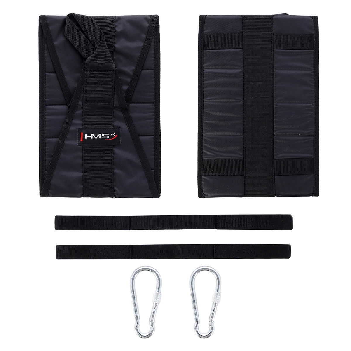 A HMS F4439 hasizmokra való függő hevederek ideális eszközök a hasizmok, a core és a csípőhajlítók erősítésére. A fém karabinerekkel egyszerűen rögzítheted a húzódzkodó rúdra, átdugod a karodat, és már edzhetsz is minimális váll- és csuklóterhelés mellett. A minőségi kivitel erős párnázással magas fokú kényelmet nyújt még megterhelő sorozatoknál is.