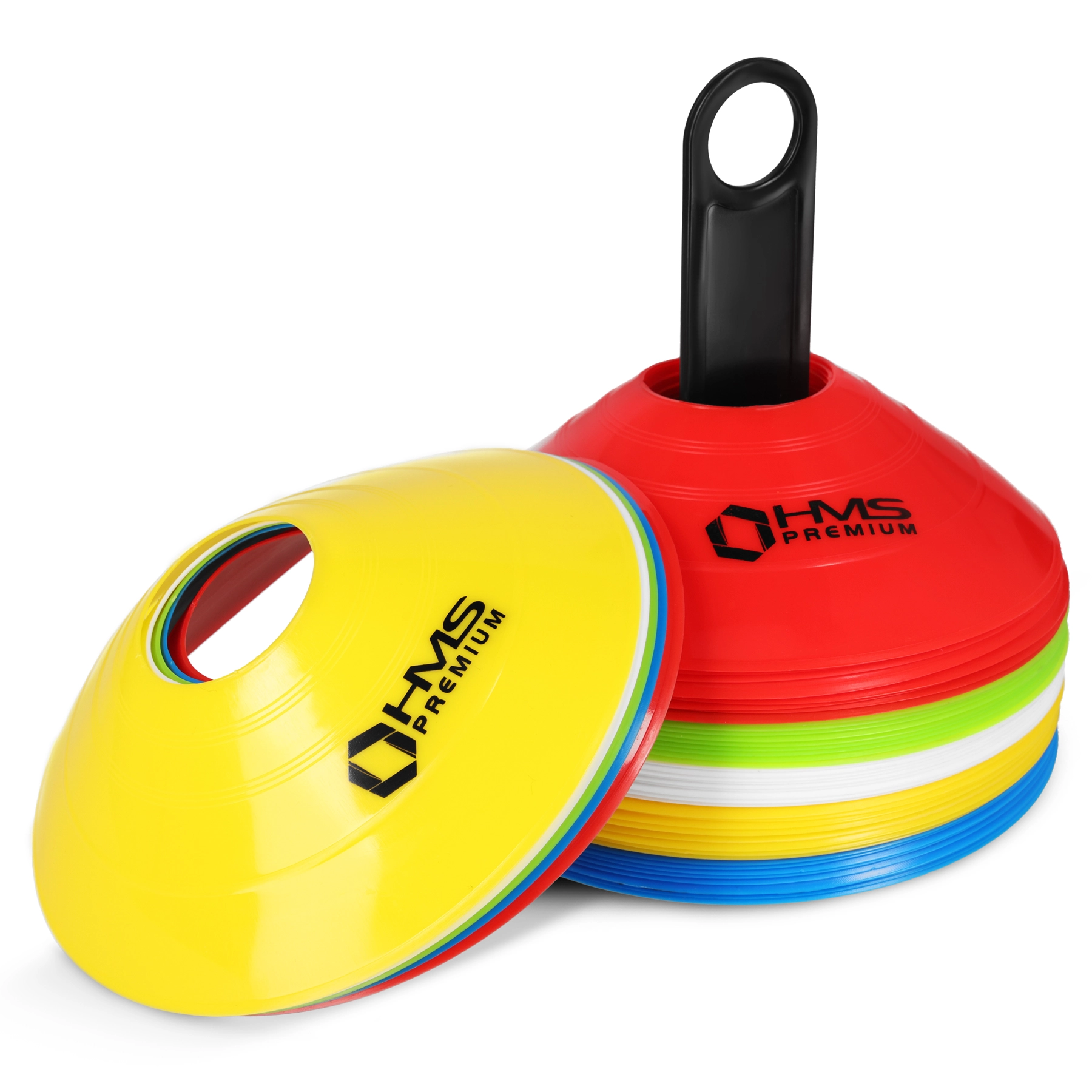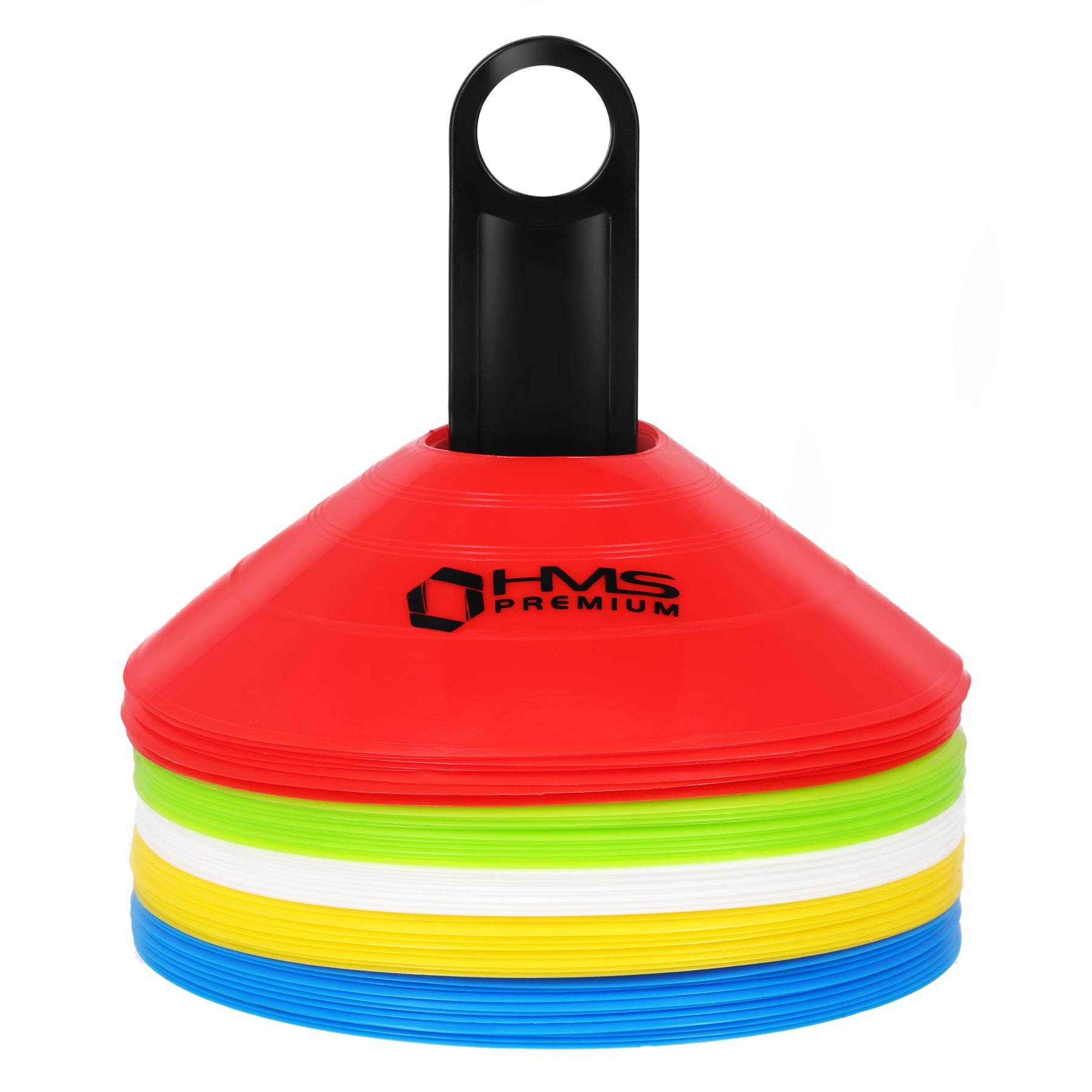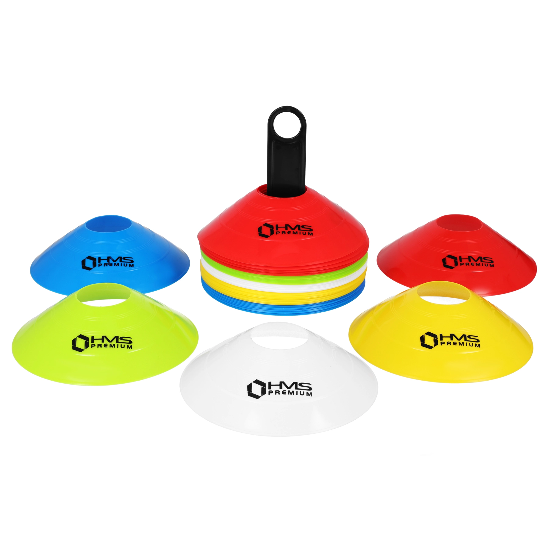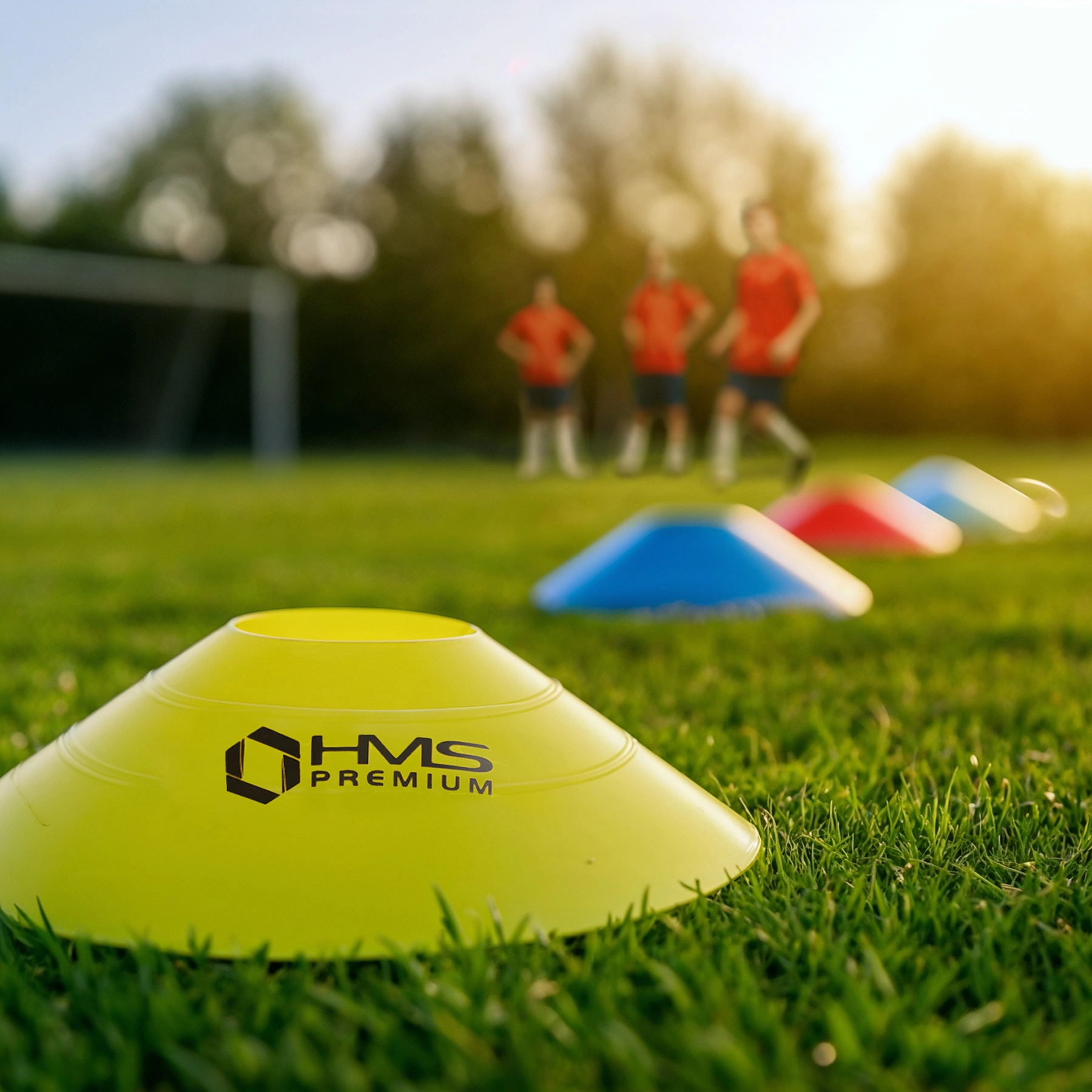 A HMS PREMIUM jelölőkúp készlet ideális futballhoz, atlétikához, fitneszhez és iskolai testneveléshez. A tartós, lágyított PVC-nek köszönhetően a kúpok ellenállnak a rálépésnek, és intenzív használat mellett is megőrzik formájukat. A színes kivitel növeli a láthatóságot, és segít átláthatóan kijelölni a zónákat, pályákat vagy edzésállomásokat.