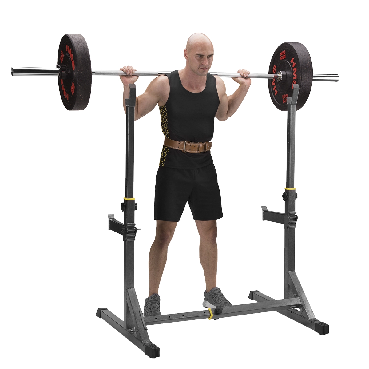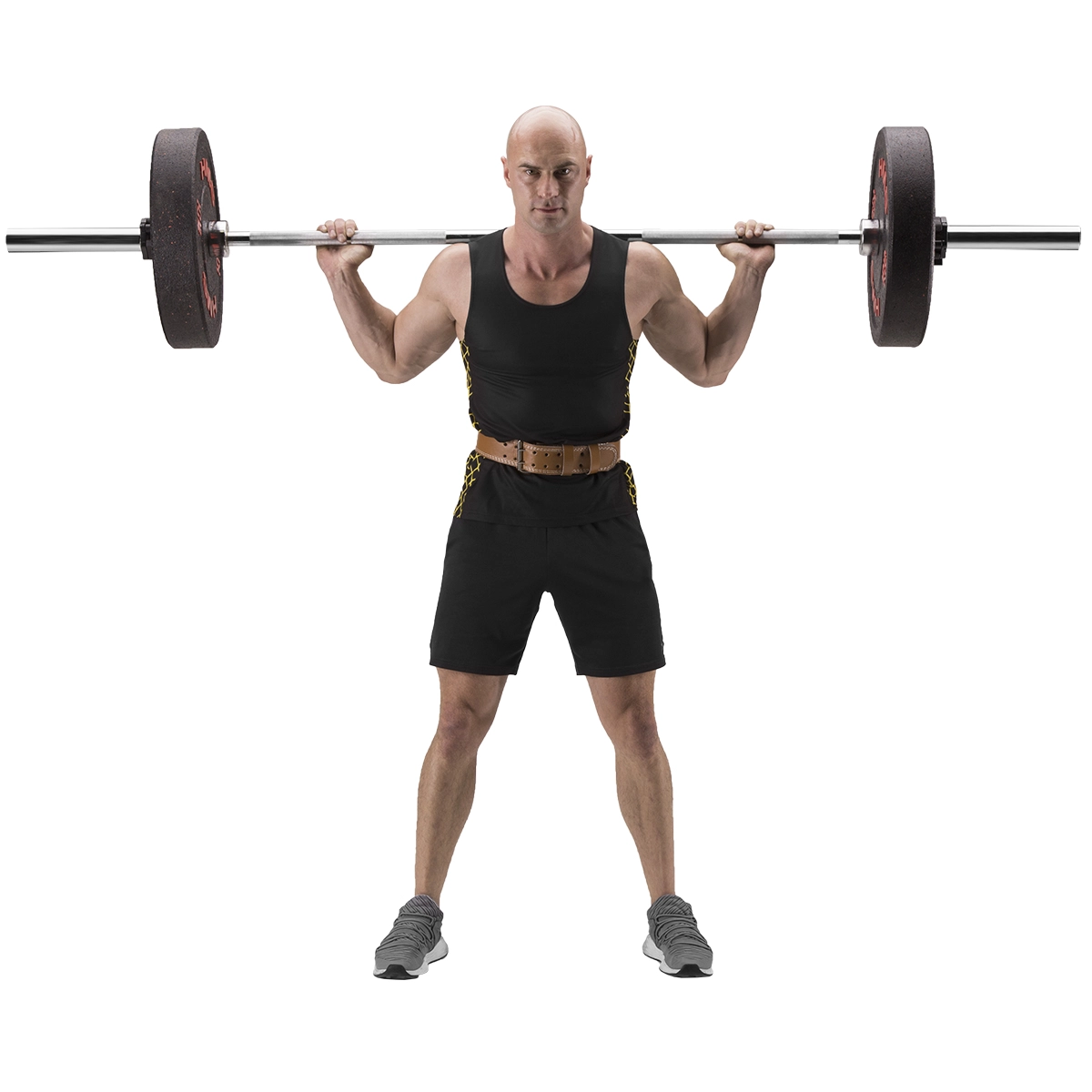 A széles, párnázott hátrész stabilizálja a törzset, és segít megtartani a helyes technikát guggolásnál és felhúzásnál.