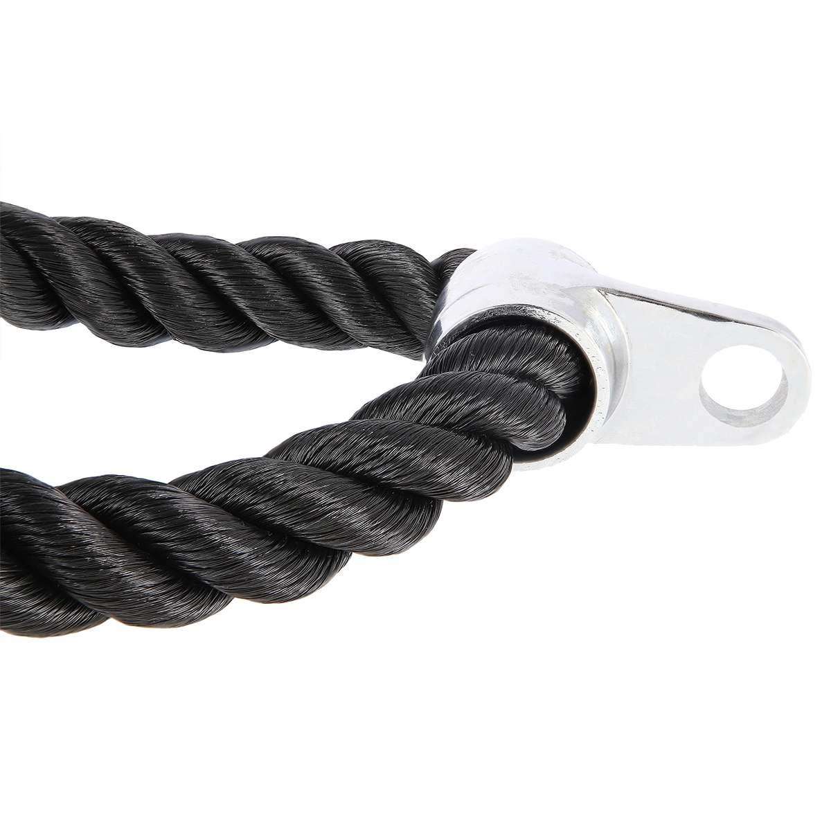 A sűrűn font, 28 mm átmérőjű nejlonkötél kézre áll, és csökkenti a tenyér fáradását nagy ismétlésszámnál.