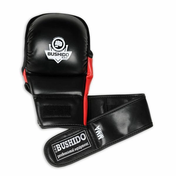 Strapabíró DBX Bushido ARM-2011 MMA kesztyű kiváló minőségű szintetikus bőrből intenzív edzéshez és sparringhoz. Edzett PU hab a hatékony ütéselnyeléshez, meghosszabbított tépőzáras pánt duplán körbetekerhető csuklórögzítéssel és egyszerű szellőzőrendszer a kényelemért és higiéniáért. Alkalmas MMA-hoz, Krav Magához, ökölvíváshoz és kick-boxhoz.