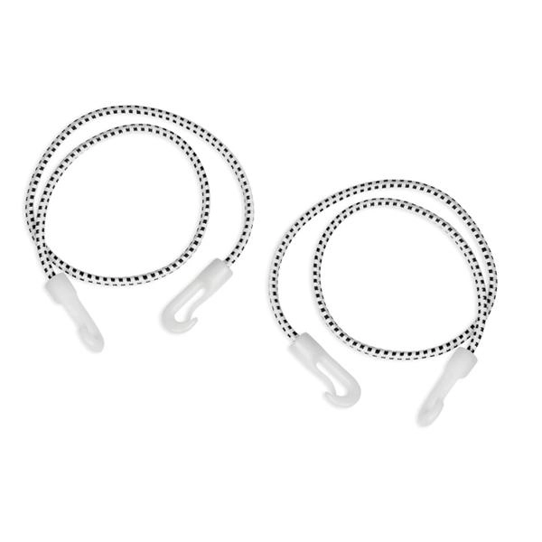 Két rögzítő gumi edzett műanyag karabinerrel a gyors feszítéshez a padló és a mennyezet között, 180–300 cm belmagasságú helyiségekhez.