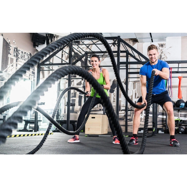 Használd a kötelet dinamikus gyakorlatokra, mint a waves, slams, diagonális áthúzások vagy laterális csapások. Ezzel hatékonyan erősíted a vállat, kart, core-t és hátat, miközben növeled a pulzusszámot HIIT edzéshez.