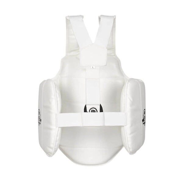 A praktikus rögzítés rugalmas, tépőzáras szíjjal gyors felvételt és pontos meghúzást tesz lehetővé különböző testalkatokhoz. A széles oldalsó fedés jobban védi a bordákat és a csípőt, így a védő alkalmas közeli és középtávolságú technikák gyakorlására. Ideális választás kezdőknek és haladóknak egyaránt.