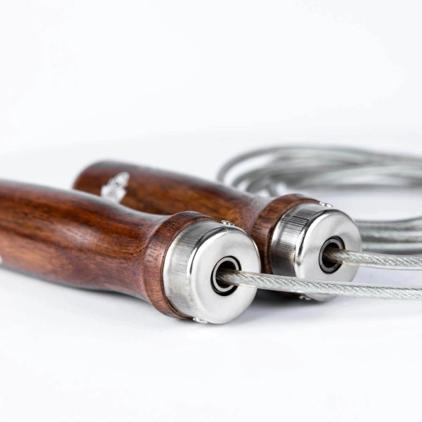 A DBX BUSHIDO ugrálókötél hatékony állóképességi és gyorsasági edzésre készült. A 15 cm hosszú fa markolatok kényelmesen illeszkednek a kézbe, a beépített csapágyaknak köszönhetően pedig gyors forgást tesznek lehetővé felesleges súrlódás nélkül. A 263 cm hosszú acél kábel átlátszó szilikon bevonata növeli a kopásállóságot és biztosítja a sima légáramlást.