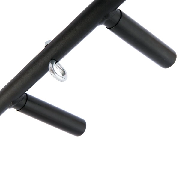 A masszív acél váz porszórt felületkezeléssel ellenáll a kopásnak, a gumírozott markolatok pedig biztos és kényelmes fogást nyújtanak. A praktikus központi fül tovább bővíti a felhasználást – felakaszthat rá például bokszzsákot, ellenállás-szalagokat vagy TRX hevedereket.