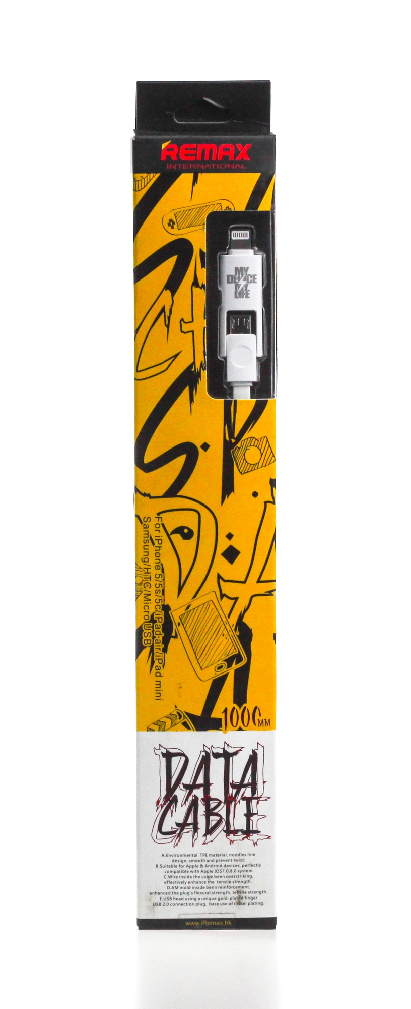 Egyetlen kábelt keres több eszközhöz? Ez a fehér REMAX kábel micro USB-vel és mellékelt Lightning átalakítóval széles körű telefonokhoz és tartozékokhoz biztosít töltést és adat-szinkronizálást, beleértve az iPhone 5 és 6 modelleket is. Könnyű kialakítása elfér zsebben, táskában vagy hátizsákban, így mindig kéznél van a megbízható csatlakozás.