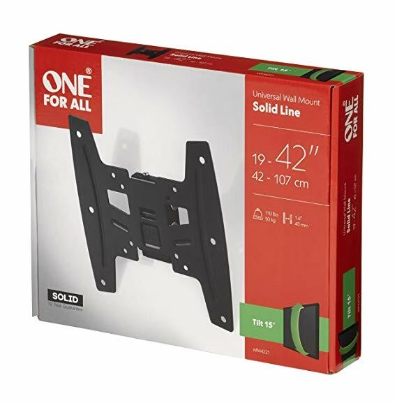 A ONE FOR ALL Solid Tilt WM4221 konzol ideális választás modern LED/LCD televíziók biztonságos és elegáns rögzítéséhez 42–109 cm képátlóig. A dönthető mechanizmusnak köszönhetően könnyedén beállítható az optimális betekintési szög, és csökkenthetők a nem kívánt tükröződések anélkül, hogy a belső tér dizájnját zavarná.