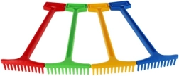 Könnyű és tartós műanyag gereblye gyerekeknek, kényelmes markolattal a biztos fogásért. Ideális homokozóba és első kerti munkákhoz. Négy vidám színben – piros, kék, zöld és sárga. Csehországban készült minőségi, biztonságos műanyagból a hosszan tartó, biztonságos szórakozásért.