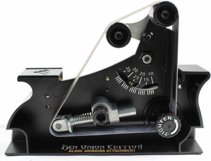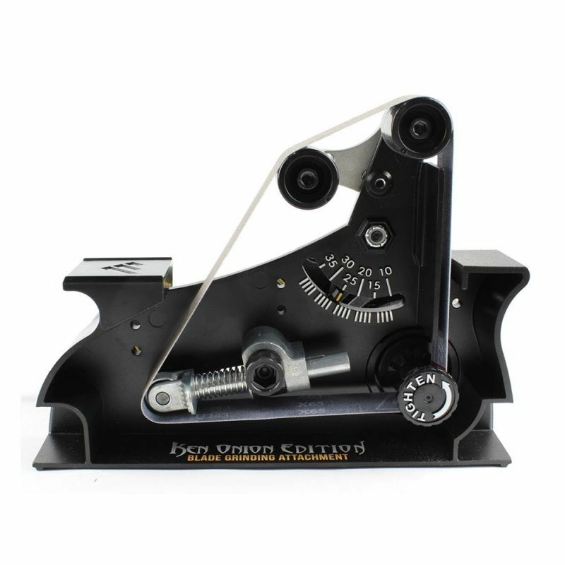 A Work Sharp Blade Grinder adapter univerzális szalagcsiszolóvá alakítja Ken Onion Edition élezőjét. A változtatható vezetőgeometriának, a szalagfeszítés szabályozásának és a pontos, 10–35° közötti szögállításnak köszönhetően teljes kontrollt kap az él felett – a finom újraélezéstől az agresszív anyaglevételig és a pengeprofil formázásáig.