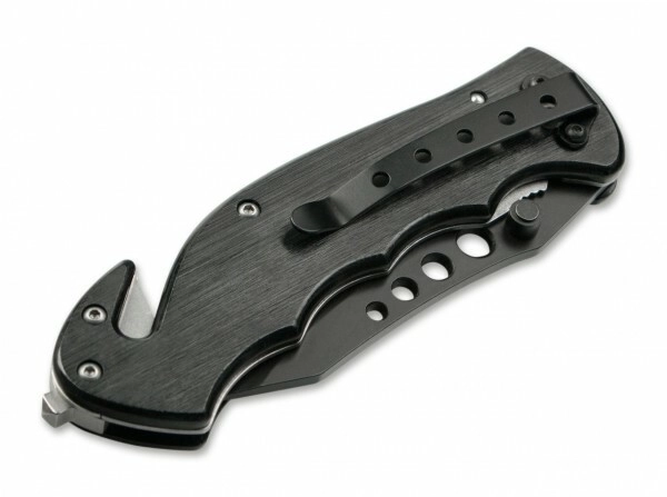 A biztonságot és a funkcionalitást a Linerlock zár és a robusztus, fekete eloxált alumínium markolat garantálja az egység emblémájával. A beépített üvegtörő és biztonsági övvágó vészhelyzetben nyújt segítséget, a zsebklipsz pedig kényelmes hordást és azonnali hozzáférést biztosít.