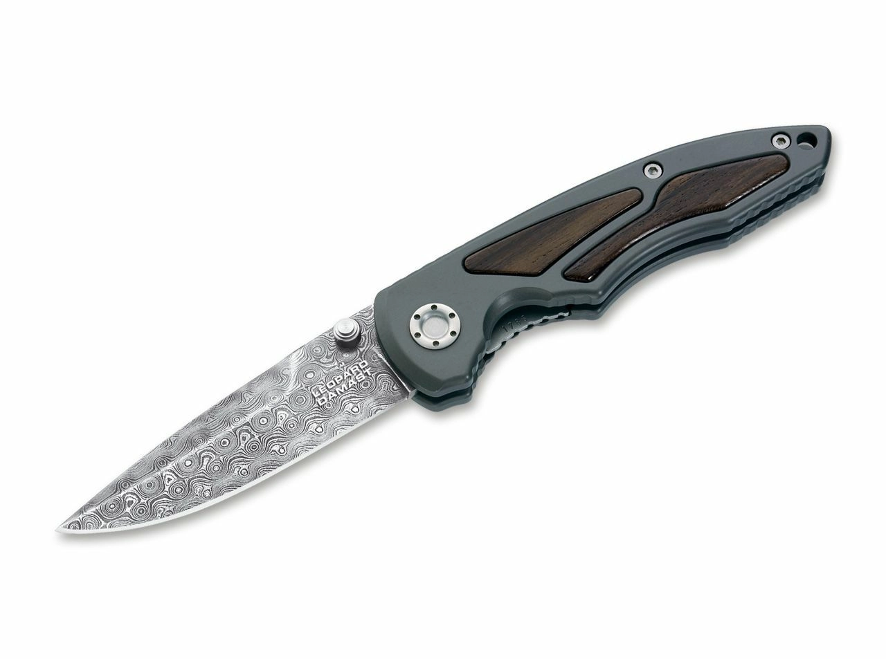 Ez az egyedülálló kés a BÖKER kiváló megmunkálását ötvözi a különleges anyagtörténettel – a német Leopard I harckocsi acéljából készült damaszkolt penge a jellegzetes „Kis piramis” mintával magas szilárdságot és hosszan tartó élt biztosít. A Drop Point profil sima éllel ideális a pontos, kontrollált vágásokhoz mindennapi használatban és kültéri tevékenységeknél is.
