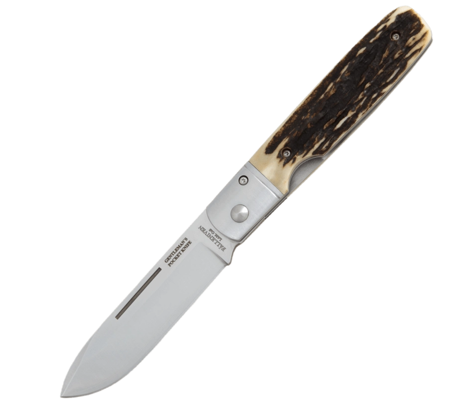 Elegáns zsebkés, a Fällkniven GPs retró megjelenéssel vadászoknak és úriembereknek. Laminált kobaltacél pengével HRC 60 keménységgel, klasszikus Drop Point pengével, megbízható Linerlock zárral és egyedi szarvasagancs markolattal. A csomag része egy stílusos velúrtok is.