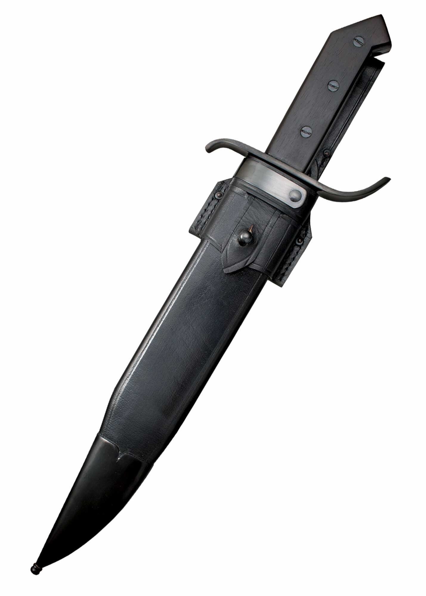 A széles, 1085-ös szénacélból készült penge hőkezelést kapott a nagy szívósság és élmegtartás érdekében, míg a magasfényű kékített felület autentikus megjelenést és részleges korrózióvédelmet biztosít. Az ergonomikus rózsafa markolat a S alakú keresztvassal biztos fogást és biztonságos kezelést nyújt. A csomagban minőségi bőr tok is található a kényelmes hordáshoz.