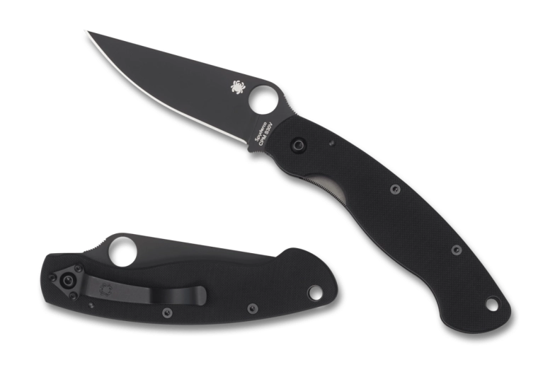 A SPYDERCO Military Model Black ikonikus taktikai zárómechanizmusú kés, igényes felhasználásra tervezve. A porkohászati rozsdamentes CPM S30V acél penge kiváló élmegtartást, hosszan tartó vágóteljesítményt és megbízhatóságot nyújt terepen. A fekete, nem fényvisszaverő felület minimalizálja a csillogást, míg a sík köszörülés pontos és hatékony vágást biztosít.