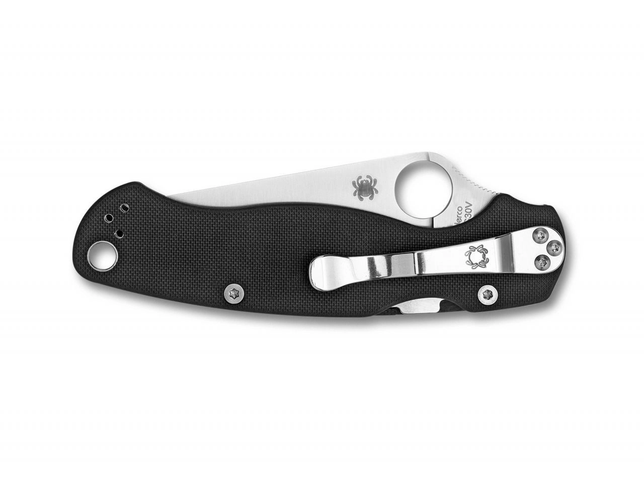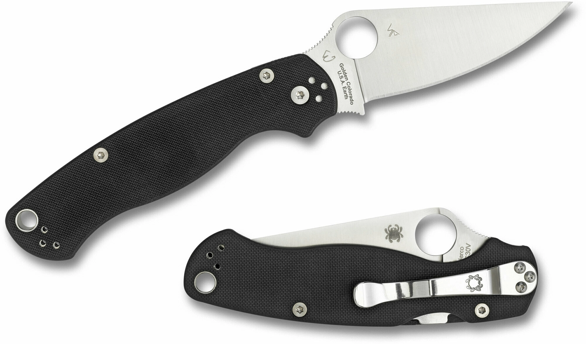 A tartós, fekete G10 markolat textúrázott a biztonságos, csúszásmentes fogásért. A kés a jellegzetes Spyderco hüvelykujjnyílással nyitható, a masszív Compression Lock pedig biztonságos munkát tesz lehetővé. A praktikus zsebklipek és a zsinórlyuk növelik a mindennapi használhatóságot.