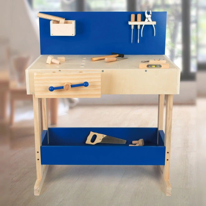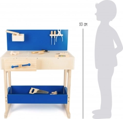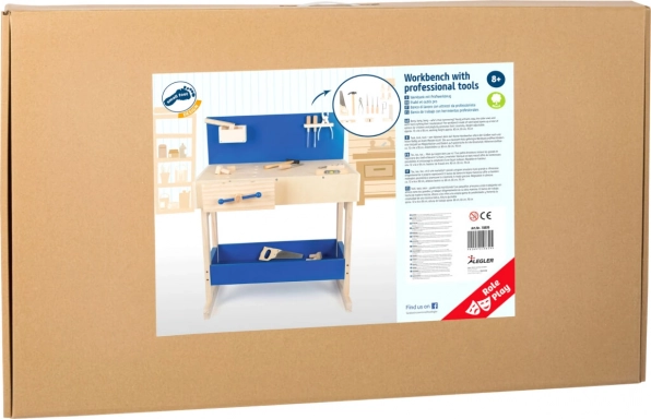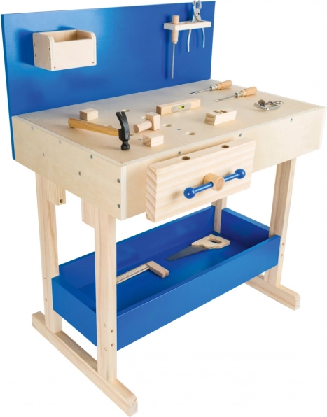 A fa munkapad lehetőséget nyújt a gyerekeknek, hogy utánzassák a valós szerszámokkal való munkát, miközben fejlesztik finom motorikájukat és képzelőerejüket. A munkapad különféle eszközökkel van felszerelve, mint például fűrész és kalapács.