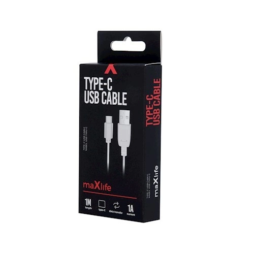 Univerzális Maxlife kábel USB‑C csatlakozóval mindennapi használatra. Megbízható töltést kínál akár 1 A áramerősséggel, valamint adatátvitelt az okostelefon és a számítógép között. A 1 m-es hossznak köszönhetően ideális otthoni és irodai használatra is, rugalmas, tartós kivitele pedig hosszú élettartamot és kényelmes használatot biztosít.