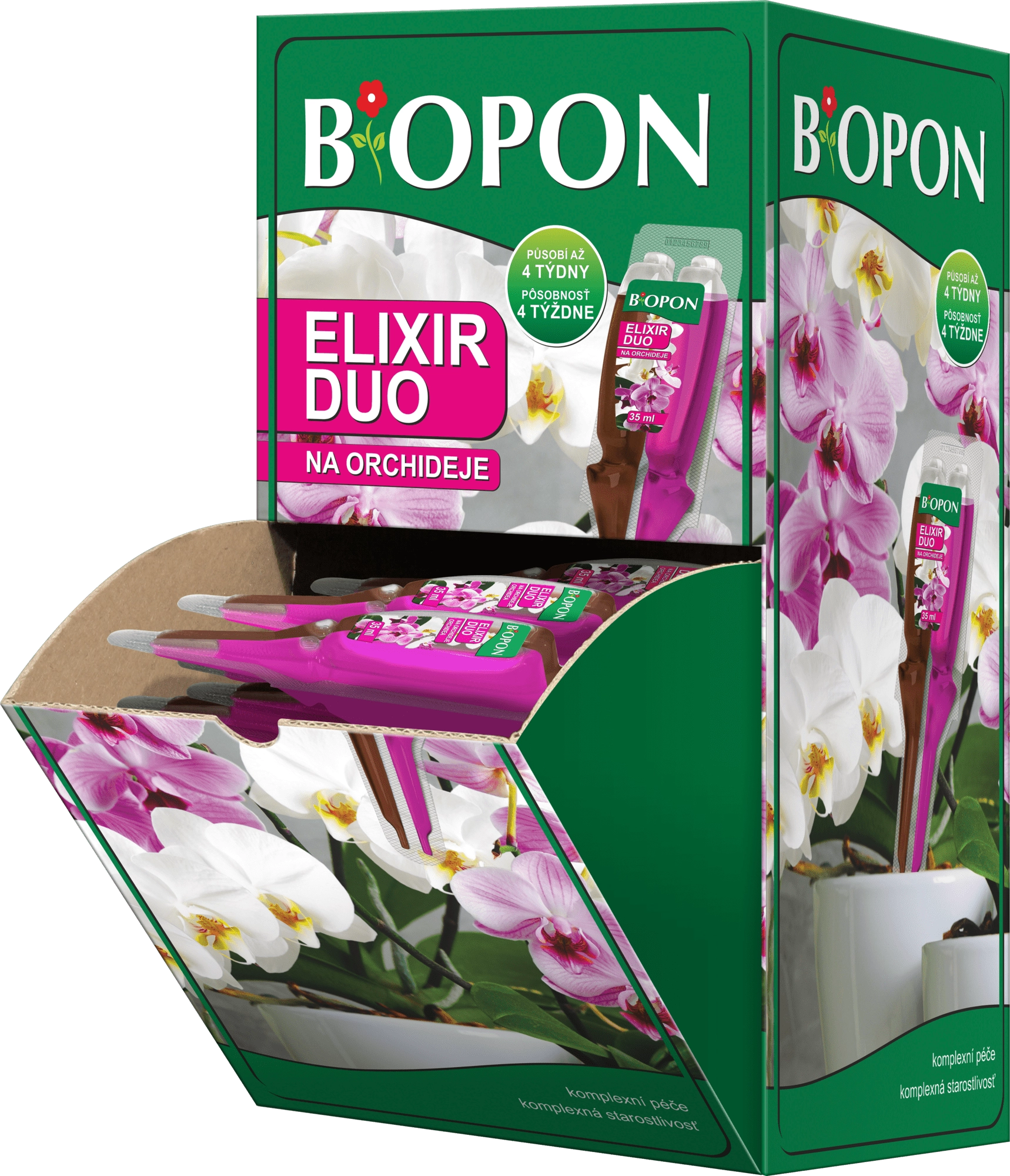 Ideális gyenge növekedésű, elégtelenül virágzó vagy rossz megjelenésű orchideákhoz, és kiválóan működik megelőző ápolásként is az egészség és vitalitás megőrzésére. A dupla applikátor lehetővé teszi mindkét összetevő egyidejű és pontos adagolását – egyszerűen, gyorsan és hibalehetőség nélkül.