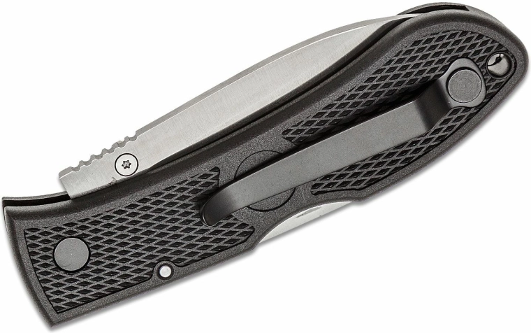 A fekete Zytel markolat kellemes textúrája stabil fogást ad még igényesebb körülmények között is. A két oldalra átszerelhető klip diszkrét zsebben hordást tesz lehetővé, a zsinórfurat pedig bővíti a rögzítési és biztosítási lehetőségeket.