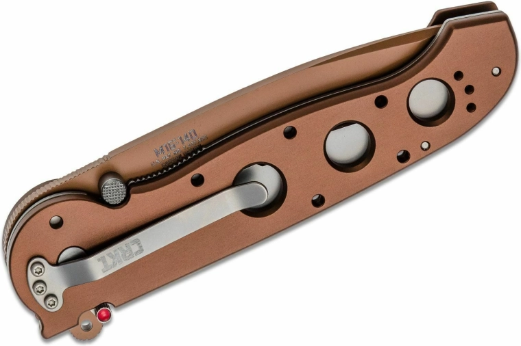 Masszív zsebkés, a CRKT M16-14D Desert Tanto mindennapi viselésre és igényes taktikai használatra. AUS-8 acél tanto penge részben fogazott éllel, tartós réz árnyalatú TiN felületkezelés, valamint gyors nyitás Carson flipperrel vagy hüvelykujjas pöcökkel. A biztonságról a liner lock AutoLAWKS rendszerrel gondoskodik, a könnyű 6061-T6 alumínium markolat könnyítő furatokkal és zsebklippel a kényelmes hordáshoz.