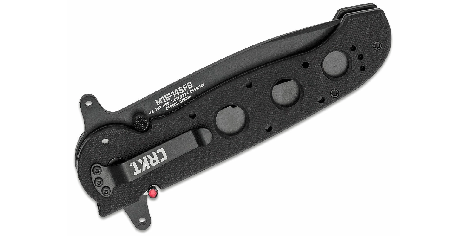 A CRKT M16-14SFG Special Forces taktikai zárókés a márka egyik legnépszerűbb modellje. Tanto pengét kínál 8Cr14 rozsdamentes acélból, részben fogazott éllel és fekete felületkezeléssel. Kétoldalas hüvelykujjtámaszszal vagy flipperrel nyitható, a biztosítást liner lock végzi, melyet az AutoLAWKS rendszer erősít meg. A tartós G10 markolat acél betétekkel és a zsebklipek magabiztos fogást és kényelmes viselést biztosítanak.