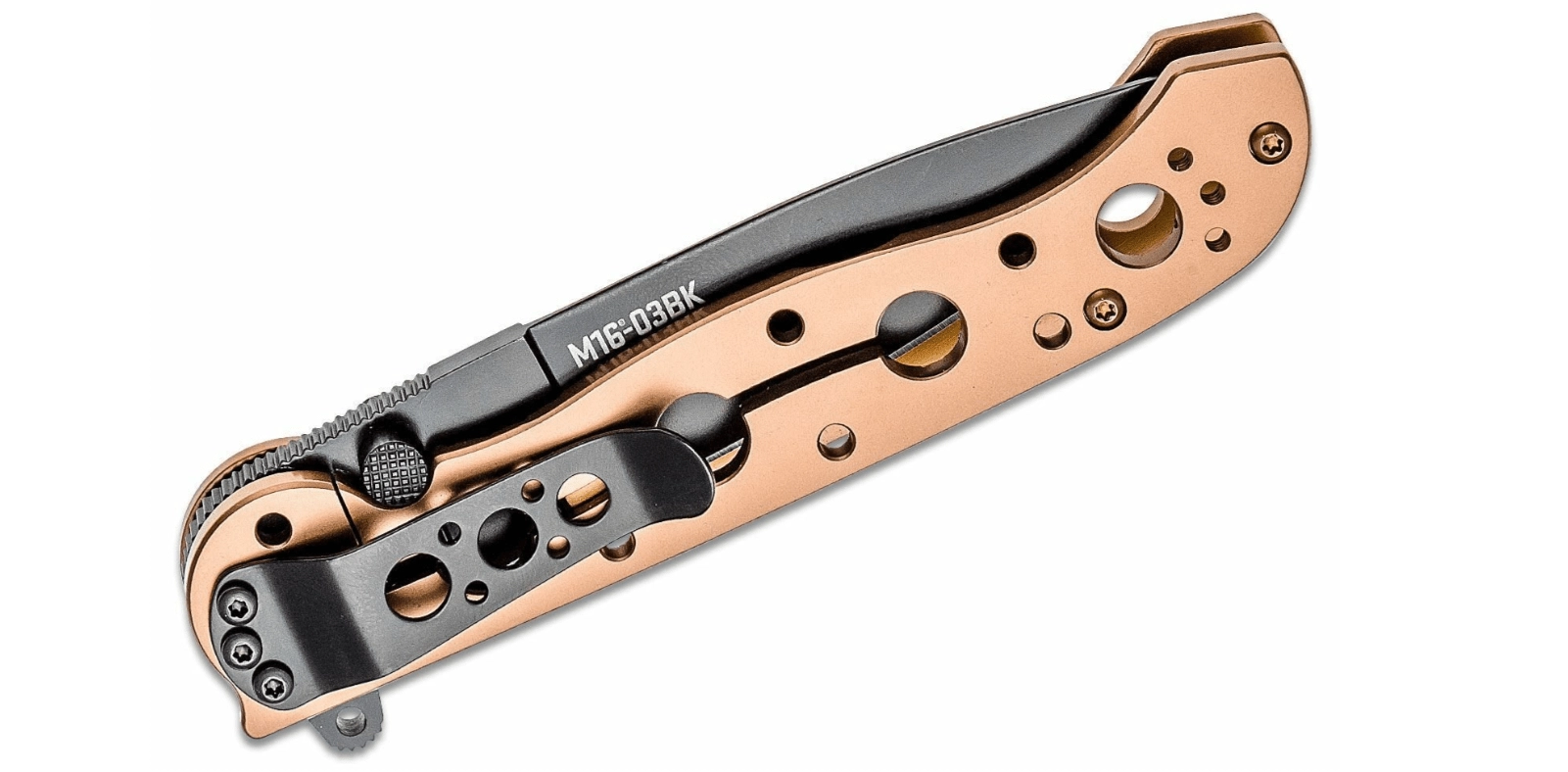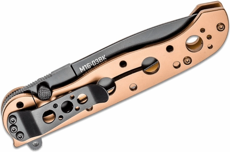 Az elegáns, mindennapi hordásra szánt EDC kés, a CRKT M16-03BK megbízható teljesítményt kínál kompakt kivitelben. 12C27 rozsdamentes acélból készült pengével rendelkezik fekete Black Oxide felülettel, gyors nyitással flipperrel és kétoldalas hüvelykujjpeckeI, valamint biztonságos Frame Lock zárral. Az acél markolat titán-bronz felületkezeléssel könnyítő nyílásokkal készült, és klippel a zsebben hordáshoz egészül ki.