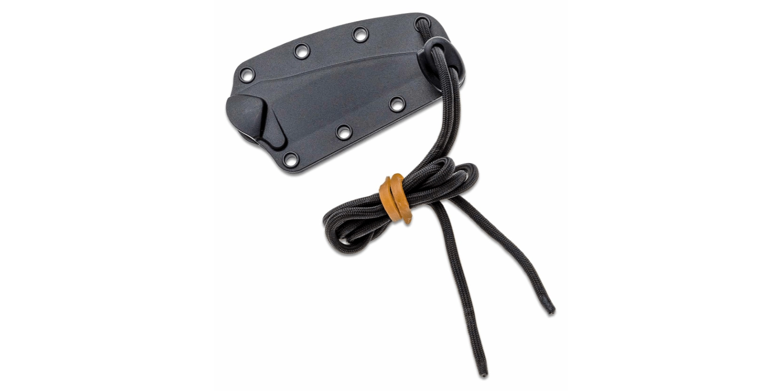 Az ergonomikus, fekete–zöld G10 markolat biztos fogást nyújt, és zsinórlyukkal is rendelkezik. Az egy darabból készült, full-tang felépítés növeli a tartósságot és a stabilitást vágás közben, míg a könnyű Kydex tok zsinórral kényelmes nyakban hordást vagy diszkrét EDC-viselést tesz lehetővé.