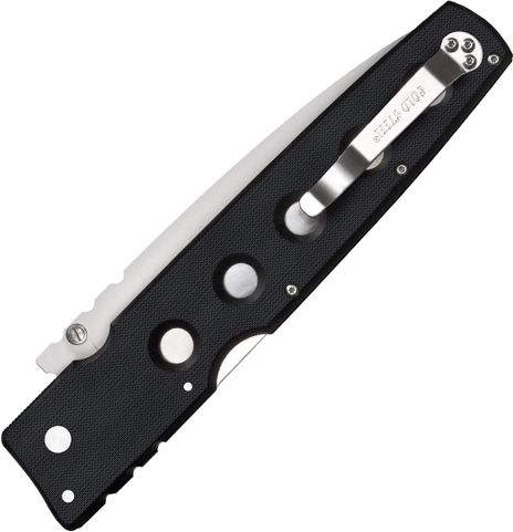 A Cold Steel Hold Out 6 modell csúcsminőségű anyagokat és átgondolt ergonómiát egyesít karcsú, könnyen hordható kialakításban. A poracél CPM‑S35VN sima, szatén felületű pengéje kiváló vágóteljesítményt, hosszan tartó éltartást és korrózióállóságot biztosít. A megbízható Tri‑Ad Lock zár minimalizálja a holtjátékot és biztonságosan tartja a pengét megterhelő használat közben is.