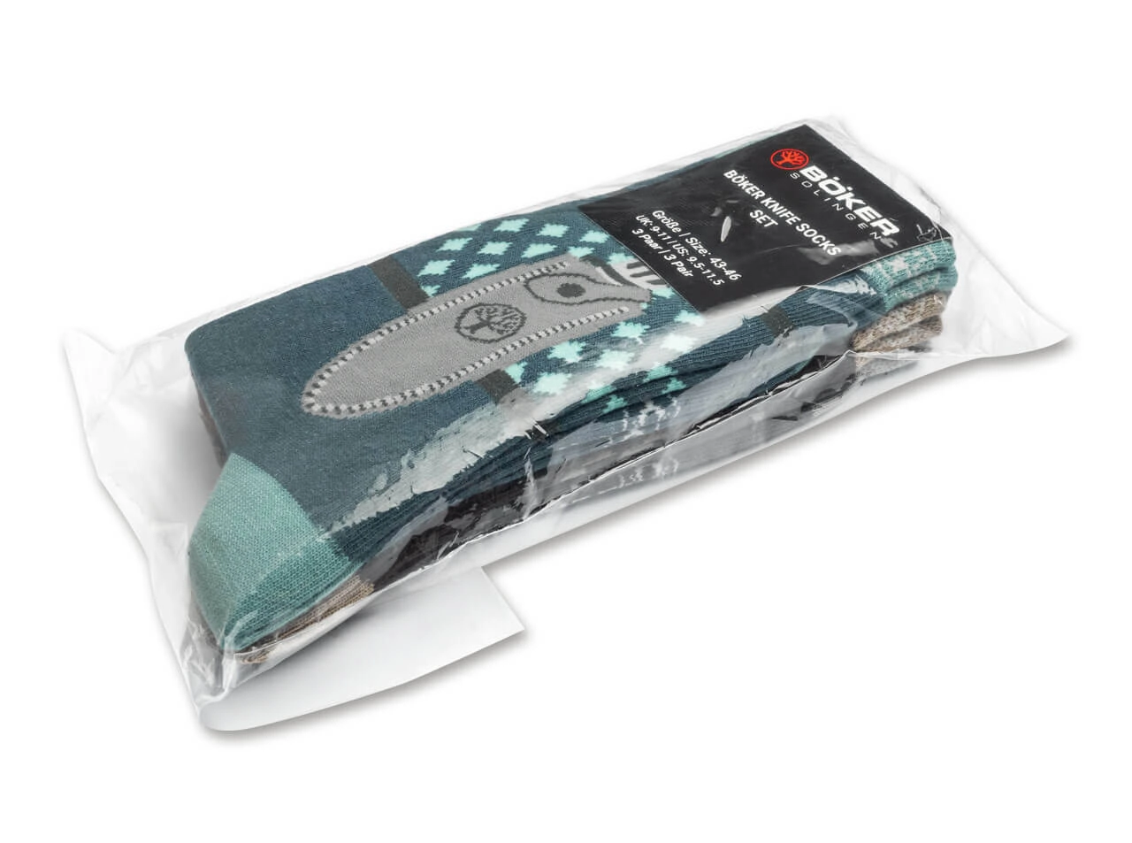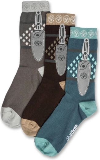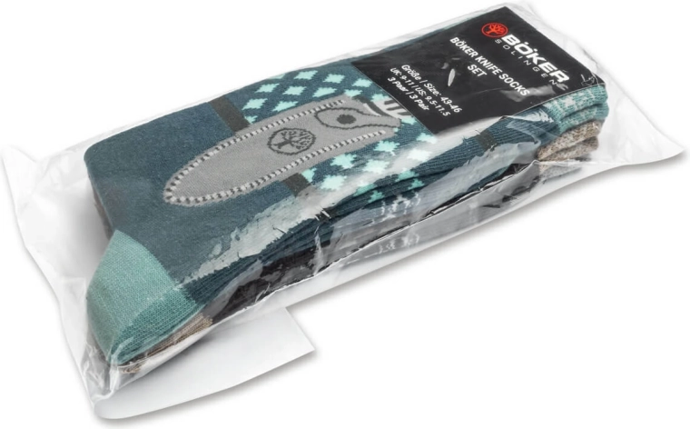 Stílusos és kényelmes zoknik a mindennapokra: 3 pár Böker Manufaktur Solingen zokni az ikonikus Applegate–Fairbairn kés motívumával. A csomagban barna, szürke és kék színváltozatok találhatók. A pamut, poliamid és elasztán keverékének köszönhetően kiválóan illeszkednek, légáteresztők és strapabírók az otthoni, munkahelyi és ünnepi „küldetéseihez”.