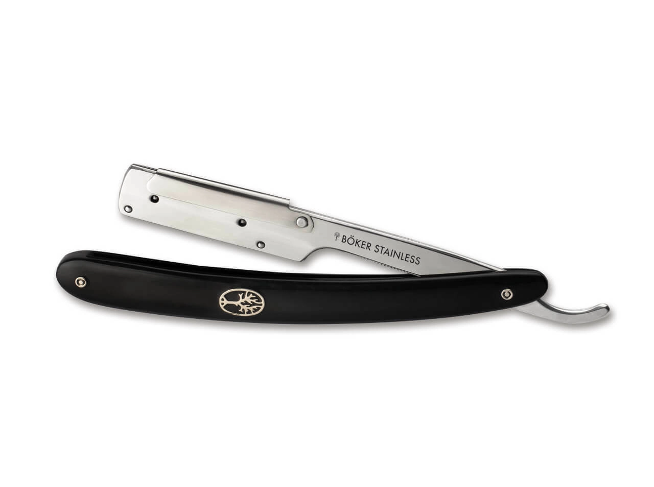 A Böker Pro Barberette a klasszikus borotválkozási élményt ötvözi a cserélhető pengék praktikusságával. A félbetört, dupla élű penge (szabvány 43 mm) két rozsdamentes acél fél közé kerül, pontos rögzítési pontokkal stabilan és biztonságosan fixálva. A belső irányba lecsapott, kerekített fej megkönnyíti a nyitást és a penge gyors cseréjét.