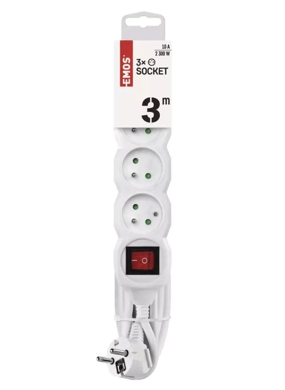 A 3 m kábelhosszúságú, három aljzattal és közös kapcsolóval ellátott Emos hosszabbítós elosztó megbízhatóan megnöveli az áramellátás elérhetőségét mindenhol, ahol a fali aljzat nem elegendő. Kínál kényelmes vezérlést kapcsolóval, gyerekzáras védőredőnyöket a nagyobb biztonságért, valamint maximális 2 300 W terhelést elegáns fehér kivitelben.