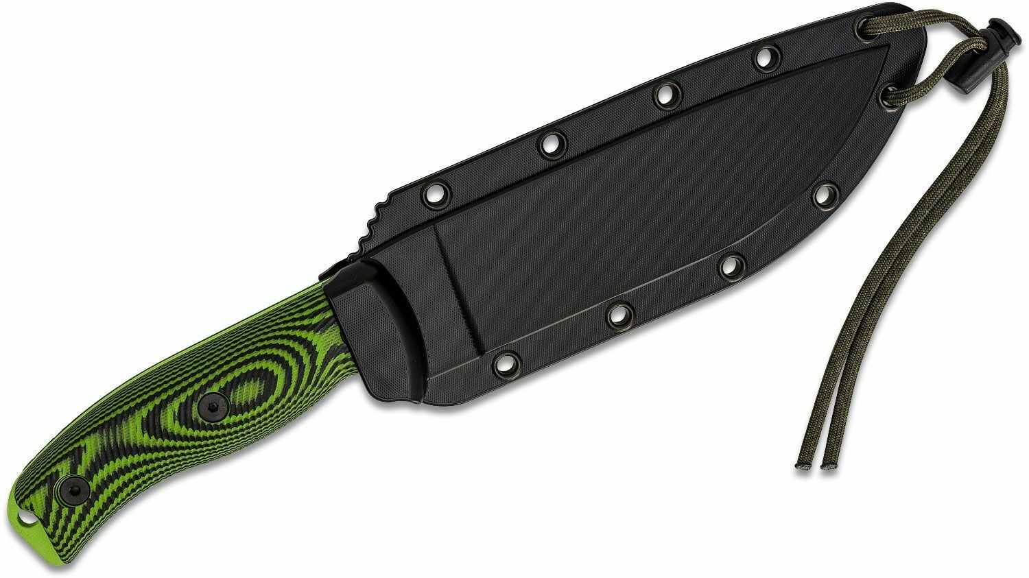 A tok zöld paracord zsinórral és állítható csúszkával van felszerelve a könnyű beállítás és a kés gyors kirántása érdekében, egyúttal növeli a szállítás biztonságát.