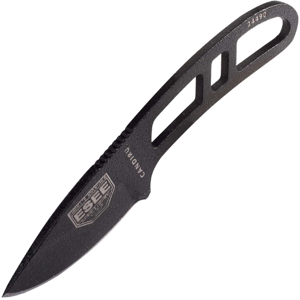 A kompakt ESEE Candiru nyakkés könnyű, tartós, és mindennapi viselésre, outdoor és túlélő felhasználásra készült. A teljes értékű penge 1095 szénacélból, fekete védő bevonattal kiváló vágásteljesítményt nyújt, a skeletizált markolat paracord feltekerésének lehetőségével csökkenti a tömeget és javítja a fogást. A csomag része egy könnyű műanyag/kydex tok a biztonságos, változatos nyakban vagy felszerelésen történő hordáshoz.