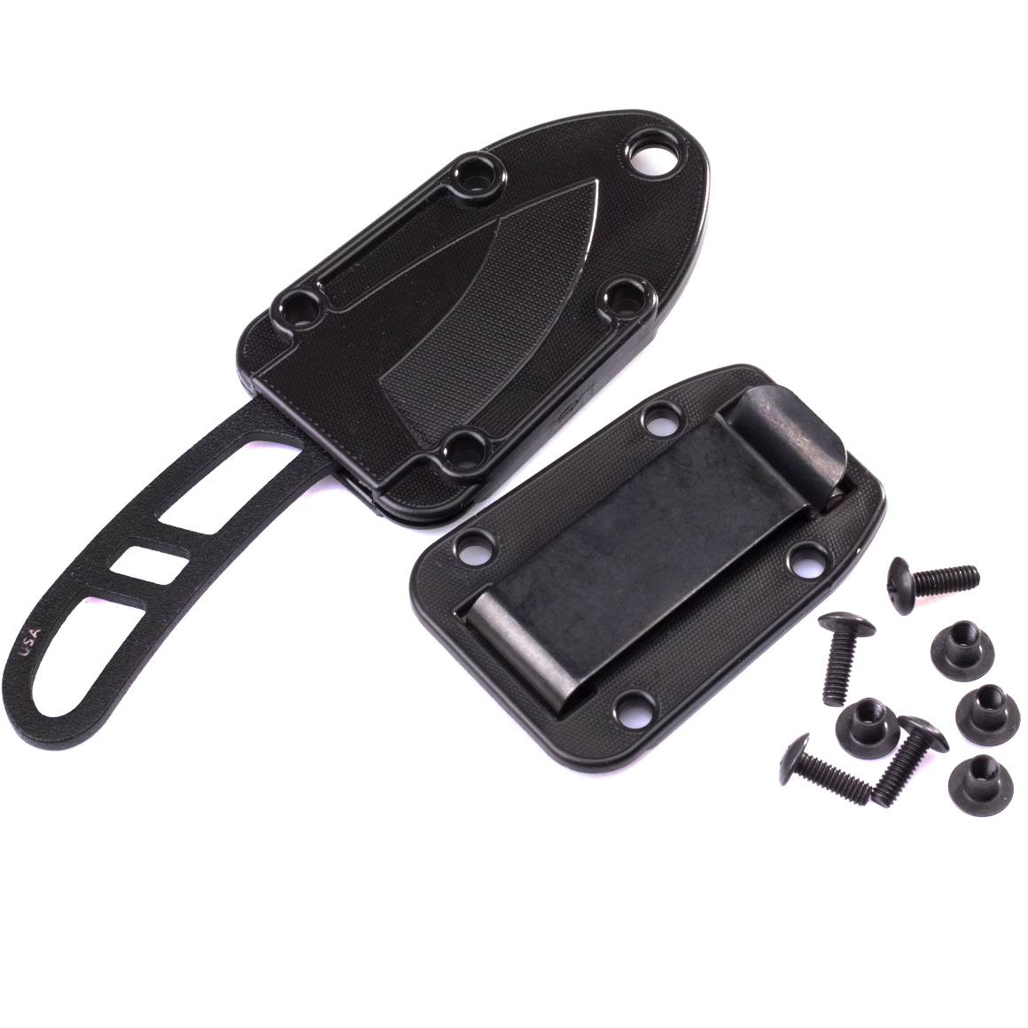 - műanyag/kydex, többszörös rögzítőnyílásokkal