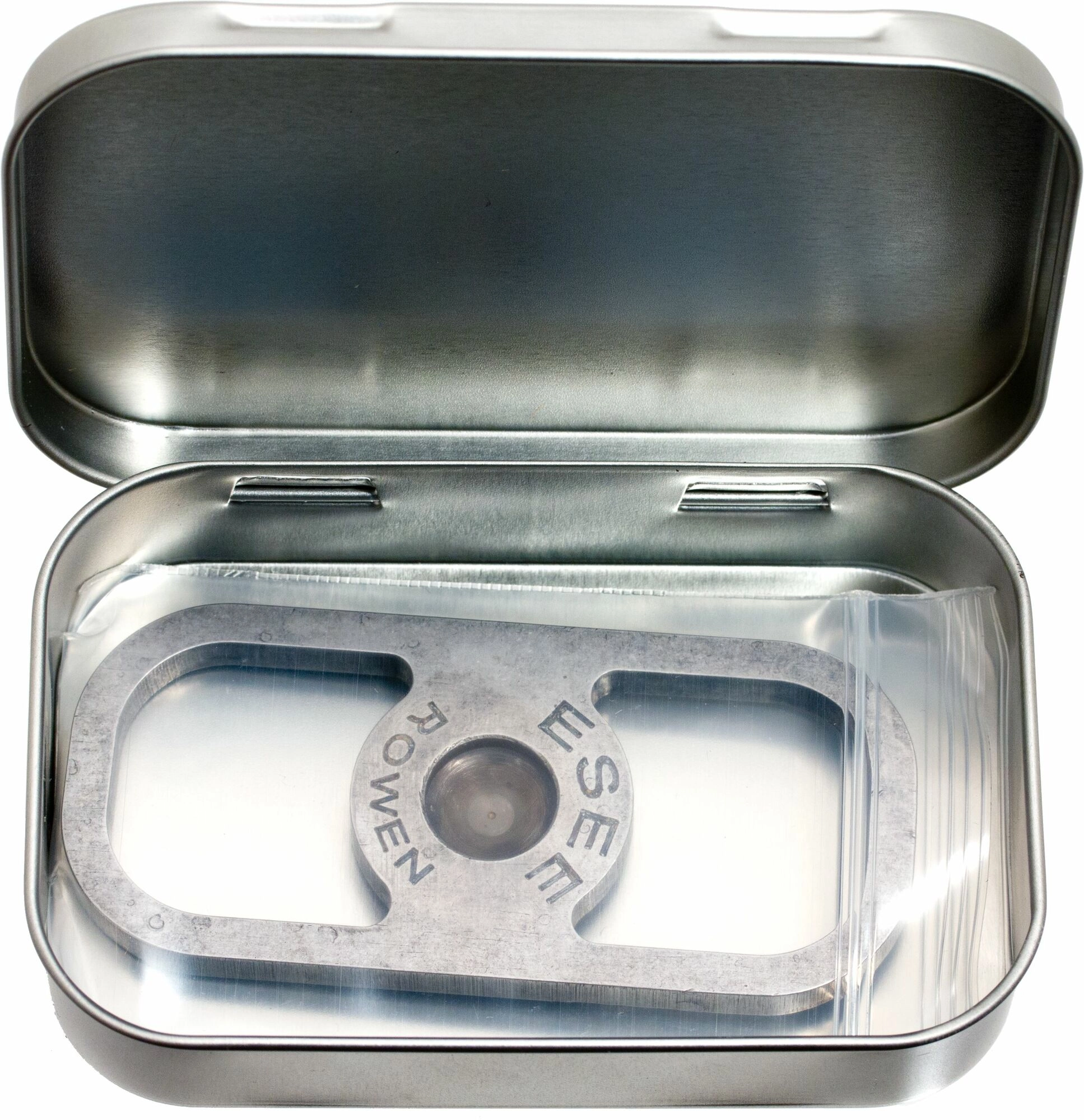 Kompakt ESEE Fire Steel szikravető 1095-ös szénacélból, megbízható tűzgyújtáshoz a természetben. Az éles peremek ferrocerium rúdhoz való kaparóként működnek, a középső csúcs pedig íjfúró számára szolgál. Tartozék egy fém doboz felhajtható fedéllel, amely alkalmas char cloth készítésére és gyújtósok tárolására.