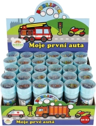 Szórakoztató buborékfújó Az első autóim motívummal, amely 3 éves kortól örömet okoz a gyerekeknek. Minden palack 50 ml oldatot tartalmaz, a kupakban pedig mini játék rejtőzik. A fújóka a kupak része.