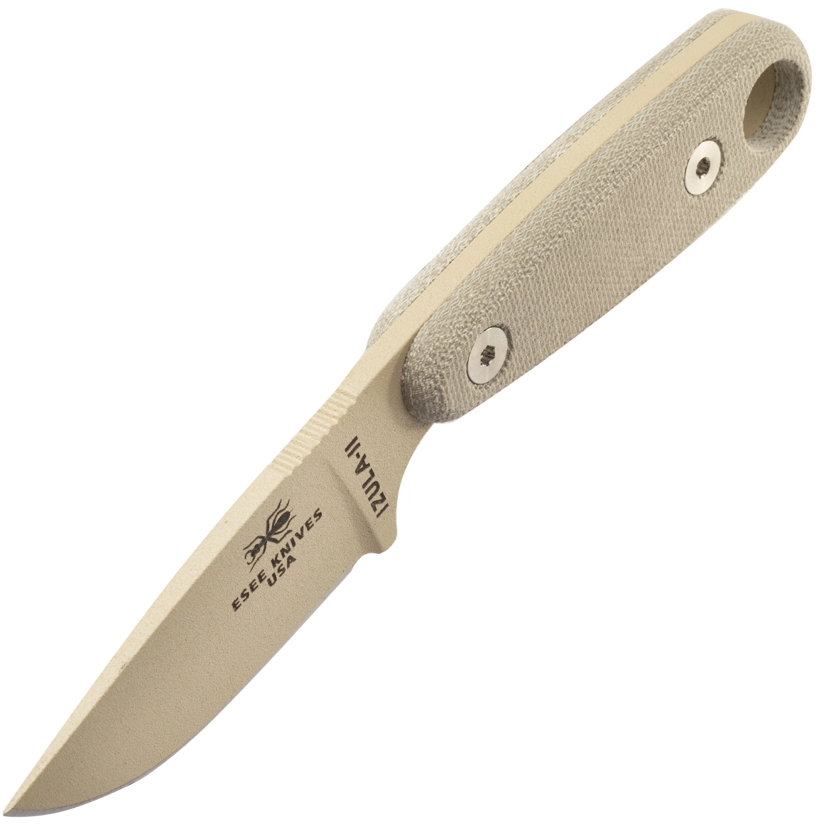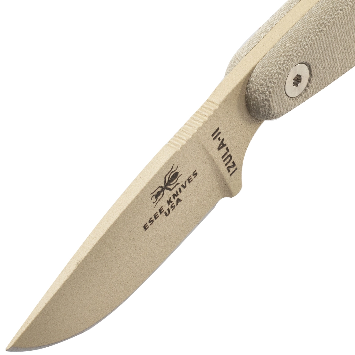 Az ESEE Izula II DT kicsi, mégis rendkívül sokoldalú fix pengés kés, amelyet a perui dzsungel szívós hangyája inspirált. Kompakt méreteinek köszönhetően kényelmesen hordható nyakban vagy diszkréten az EDC-felszerelésben, miközben kiváló irányíthatóságát megőrzi a markáns ujjvájat és a hüvelykujj számára kialakított érdesített gerinc révén.