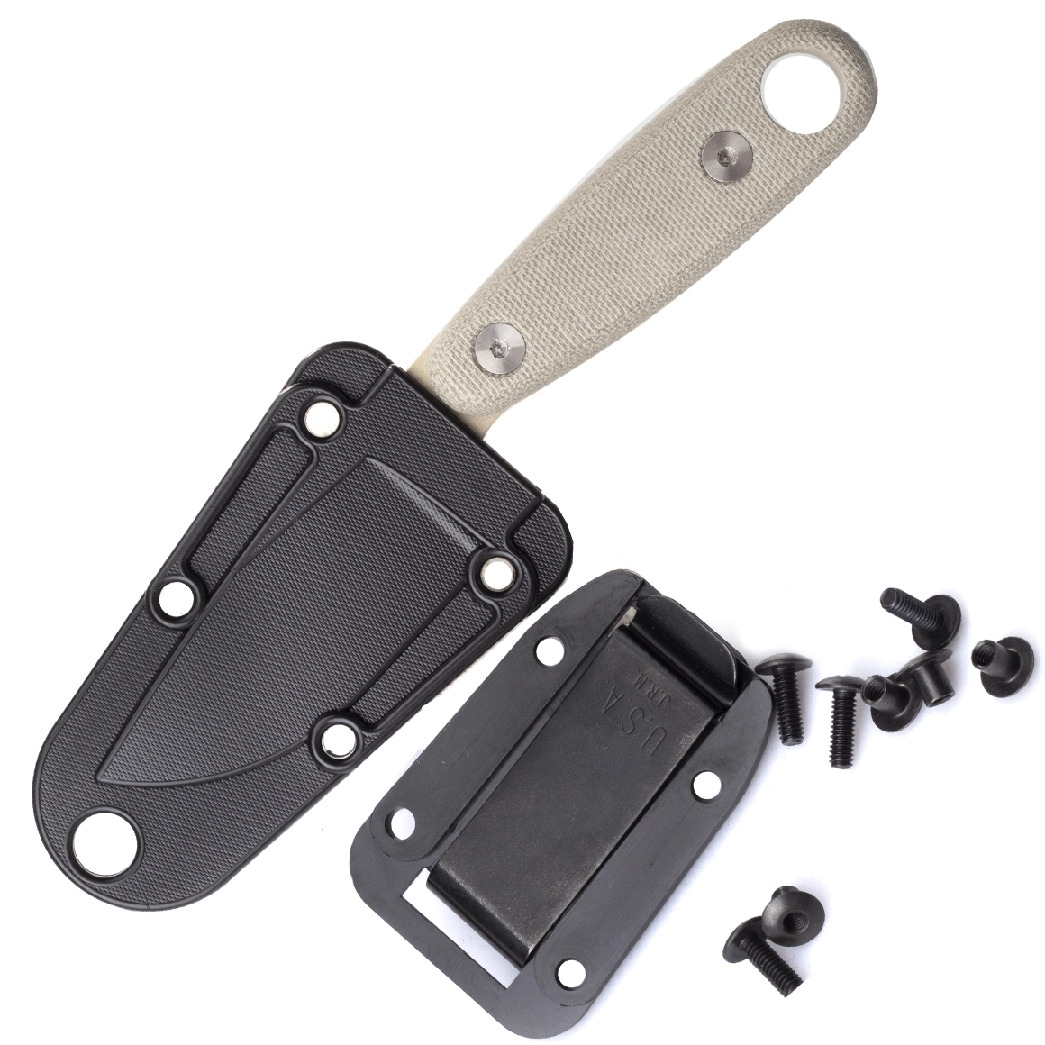 A könnyű, fekete klipszes tok lehetővé teszi a nyakban, övön vagy felszerelésen való hordást – a kés mindig kéznél van.
