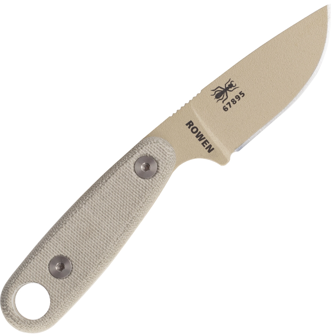 A 1095-ös szénacél penge sivatagi barna bevonata ellenáll a korróziónak és kopásnak, és megbízható vágást biztosít városi és természetbeli használat során is. A teljes értékű full-tang konstrukció garantálja a szilárdságot, míg a texturált Micarta markolat nedves és hideg körülmények között is magabiztos fogást nyújt.