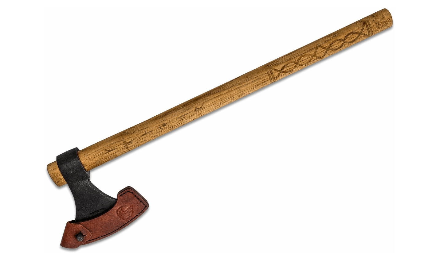 A hosszú, amerikai hikorifából készült nyél biztos fogást, remek erőkart és magabiztosságot ad minden dobásnál – látványos rúnás részletekkel.