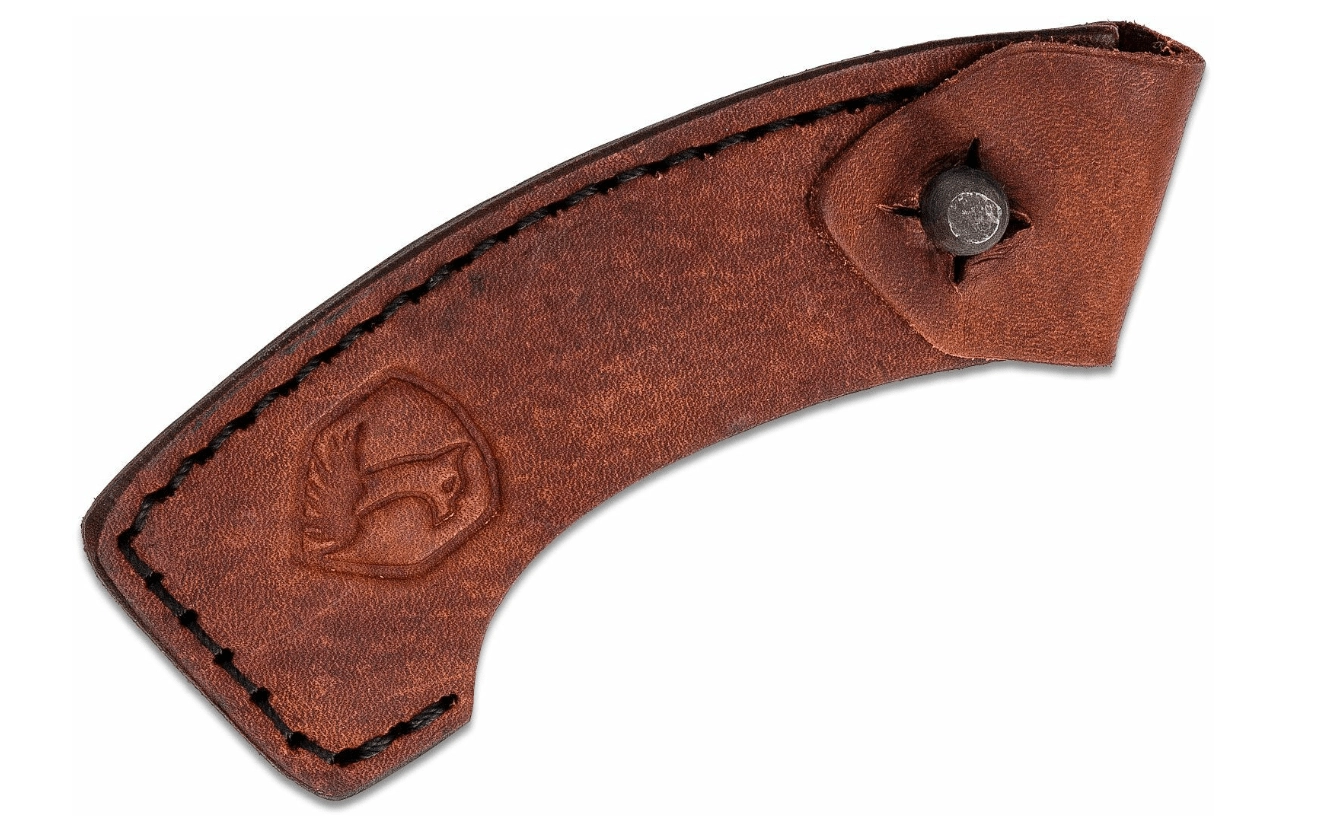 A csomag része a kézzel varrott bőrtok, amely védi az élt és biztonságos szállítást tesz lehetővé. A fa díszítő vésetei Valhalla ihlette, autentikus megjelenést kölcsönöznek anélkül, hogy a terepi praktikusság csorbulna.