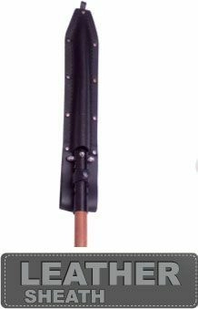 A kemény trópusi fából készült markolat simára csiszolt a biztos és kényelmes fogásért. A csomag része a kézzel varrott bőrtok, amely megkönnyíti az eszköz biztonságos hordását és tárolását táborban vagy műhelyben.