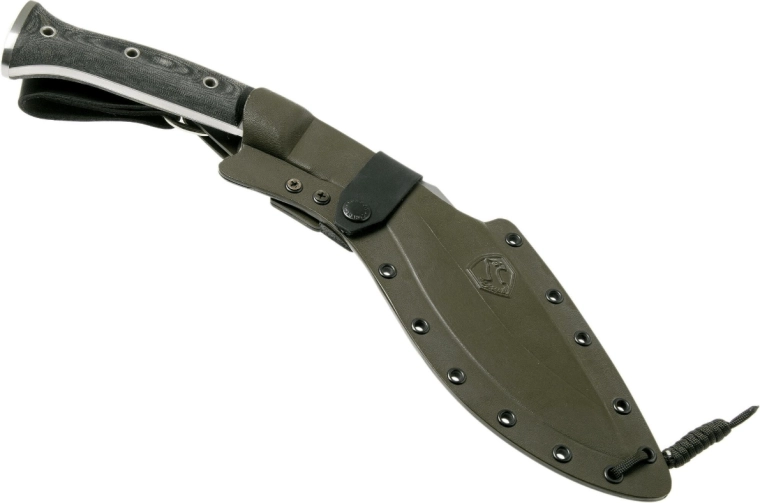 A jellegzetes kukri formájú machete a nepáli gurkhák bevált eszközén alapul. A kifejezett ívelésnek és a nehezebb élrésznek köszönhetően kiváló a fa gyors és hatékony vágásához, gallyazáshoz, valamint igényes outdoor és taktikai feladatokhoz. Az 1075-ös szénacél nagy szívósságot és megbízható teljesítményt nyújt terepen.